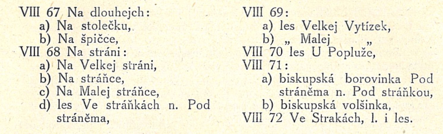 Vedle těchto názvů dnes obvyklých byly dříve ještě tyto: 1. pod Smrczkem Př. 16, 1. ke Smrczku Př. 21, ba dokonce i: 1. V (= u) Brcžekoll Př. pan.