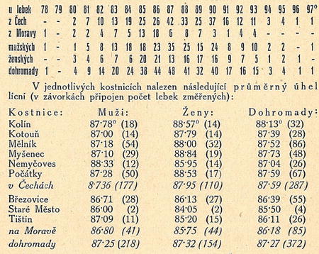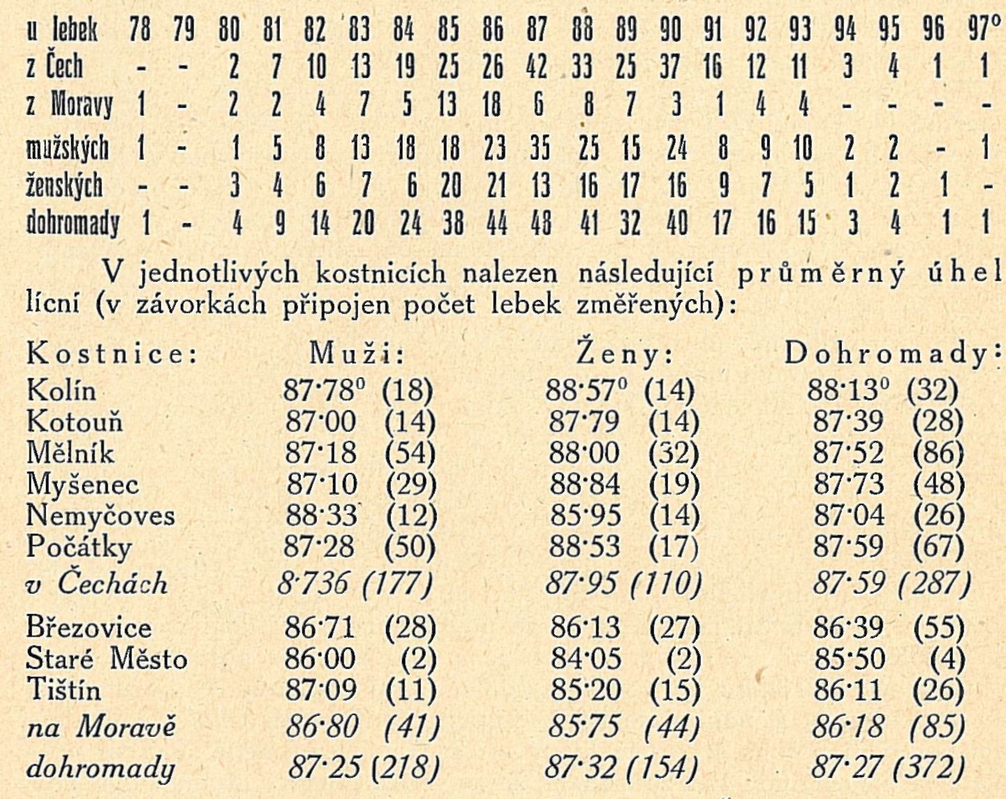 Mé šetření konáno bylo na 372 lebkách, pocházejících ze 6 českých a 3 moravských kostnic1) a uložených ve sbírkách antropologického ústavu české university v Praze, kdežto řada lebek starých osob byla jako nevhodná z měření vyloučena.