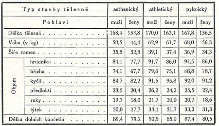 Tabulka 2. Stavba tělesná a duševní založení.