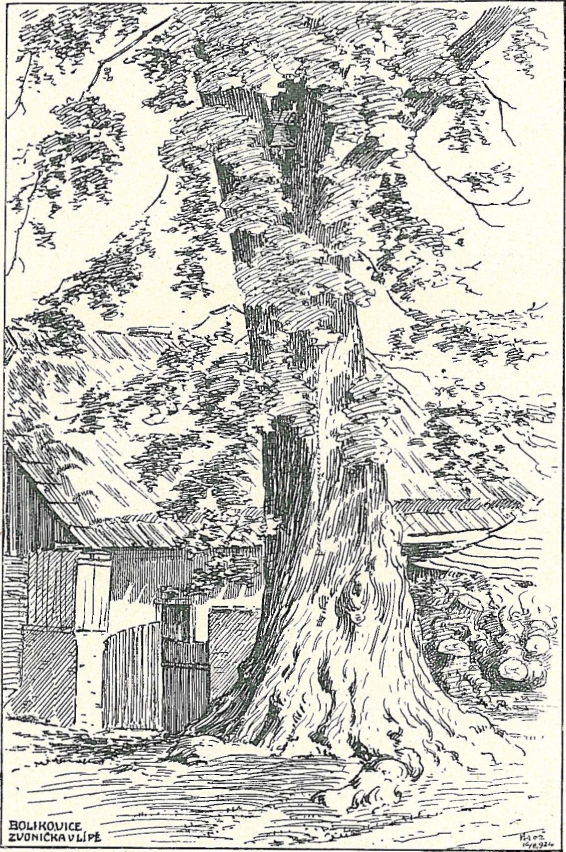 Čís. 1. Bolikovice. Zvonička v lípě.