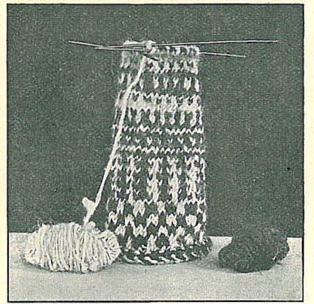 Do druhů prací pletení (Wirkerei) zařadím ještě malou zmínku.o jedné staré technice, vyskytující se na Slovensku, t. zv. „pletenie zapiaste k". Ovšem třeba rozeznati dva druhy pletení zapiastek; pletení jehlic emi jako pletou muži ko-pice (punčochy ze silné vlny) (viz obr. na str. 29), a pletení jich pomocí napiaté osnovy na konci dřeva, druh jistě starší a nic jiného než základ a primitivní předchůdce norského gobe-