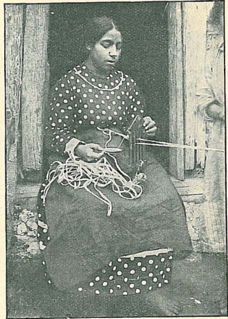 Čís. 5. Cigánka tkající tkanice „krósienkem" v Šumiaci.