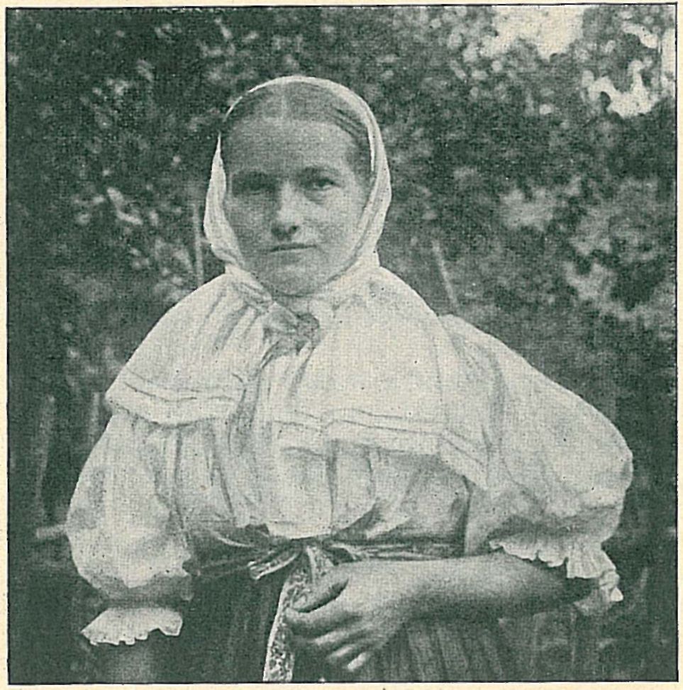 Konečně třetí území, jižní, nazývám oblastí „pólk y". Roucha ta, ještě delší a obyčejně širší než šata, halí nejen celou hlavu, nýbrž i krk a konce její visí napřed po prsou nebo na boky. (Obr. 9.) Oblast její pokryta je na mapce čarami od leva k právu klesajícími.