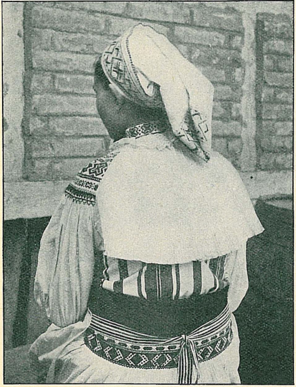 V starších dobách nezavíjely si ženy šatu takto |do cípu, nýbrž nechávaly zadní kraj volně splývat na ramena. Tento