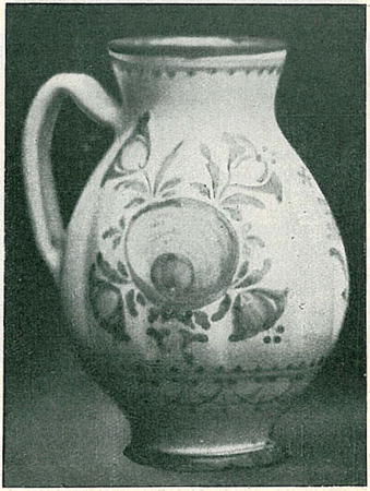Z typických džbánků Hejtmánkových zasluhuje především zmínky ten, který dělal pro Ignáce Wognara, zedníka v Němčících (obr. 5, inv. č. 123). Jest 24 cm vysoký, na břichu sedminásobné ryhovaný. Oba okraje mají žlutou linku. Vpředu je džbán zdoben modrou kyticí, nepříliš organicky vytvořenou: z centrálního květu vybíhají po stranách a nahoře pro Hejtmánka typické květy nestejné velikosti. Uprostřed je vepsán