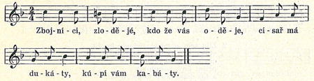 Tanči se: Tančí sami chlapci vždy dva a dva tak, že ser dva šohaji postaví proti sobě, ruce s pěstmi sevřenými dají si na svá prsa a při každém taktu podupávajíce poskokem na místě, vždy pěstmi se od sebe rozmáchnou a zpět na prsa položí a to nejdříve pomalu, načež takt od taktu stále a stále rychleji s koncem dle libosti.