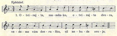 (Nápěv jako: Ideme, ideme ...)