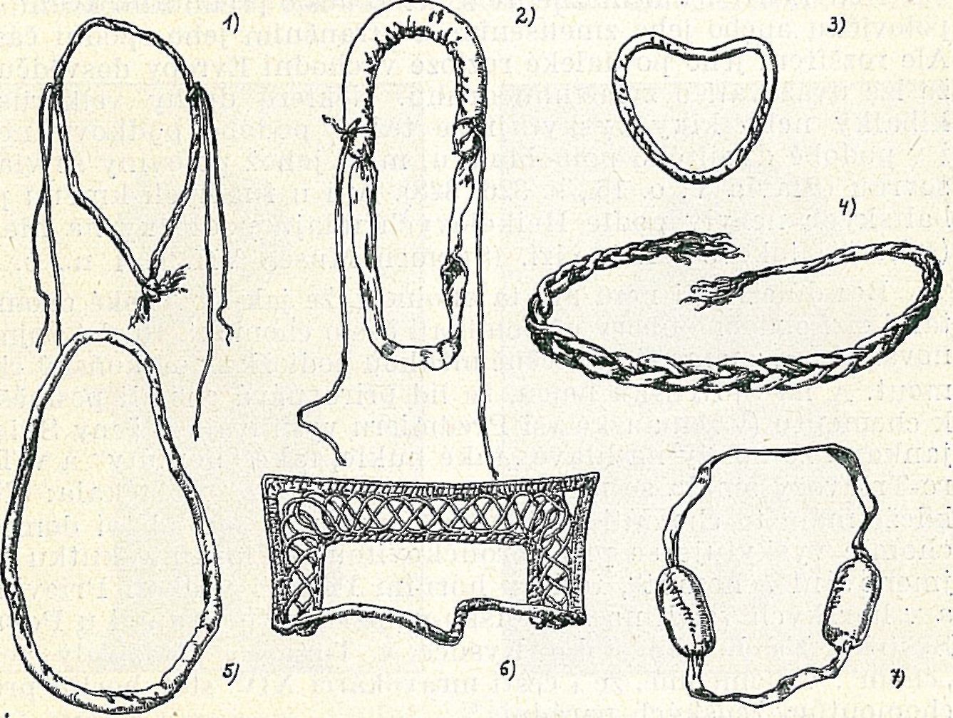 „Chomúty" 1. z. Papradného u Pováž. Bystrice, 2. z Gajdelu u Něm. Pravna, 3. z Ráztnčna u Prievidze, „grgule" 4. z Turné u Trenčína, 5. z Dolné Poruby u Iľavy, 6. z Dražovců u Nitry, 7. Ze Zliechova u Ilavy.