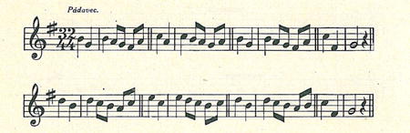 *) Tanec vzat je z Vycpálkových „Českých tanců", jež vyšly až r. 1921 a obsahují 67 proměnlivých tanců, z části variantů těch tanců, jež jsou již v mé studii analysovány.