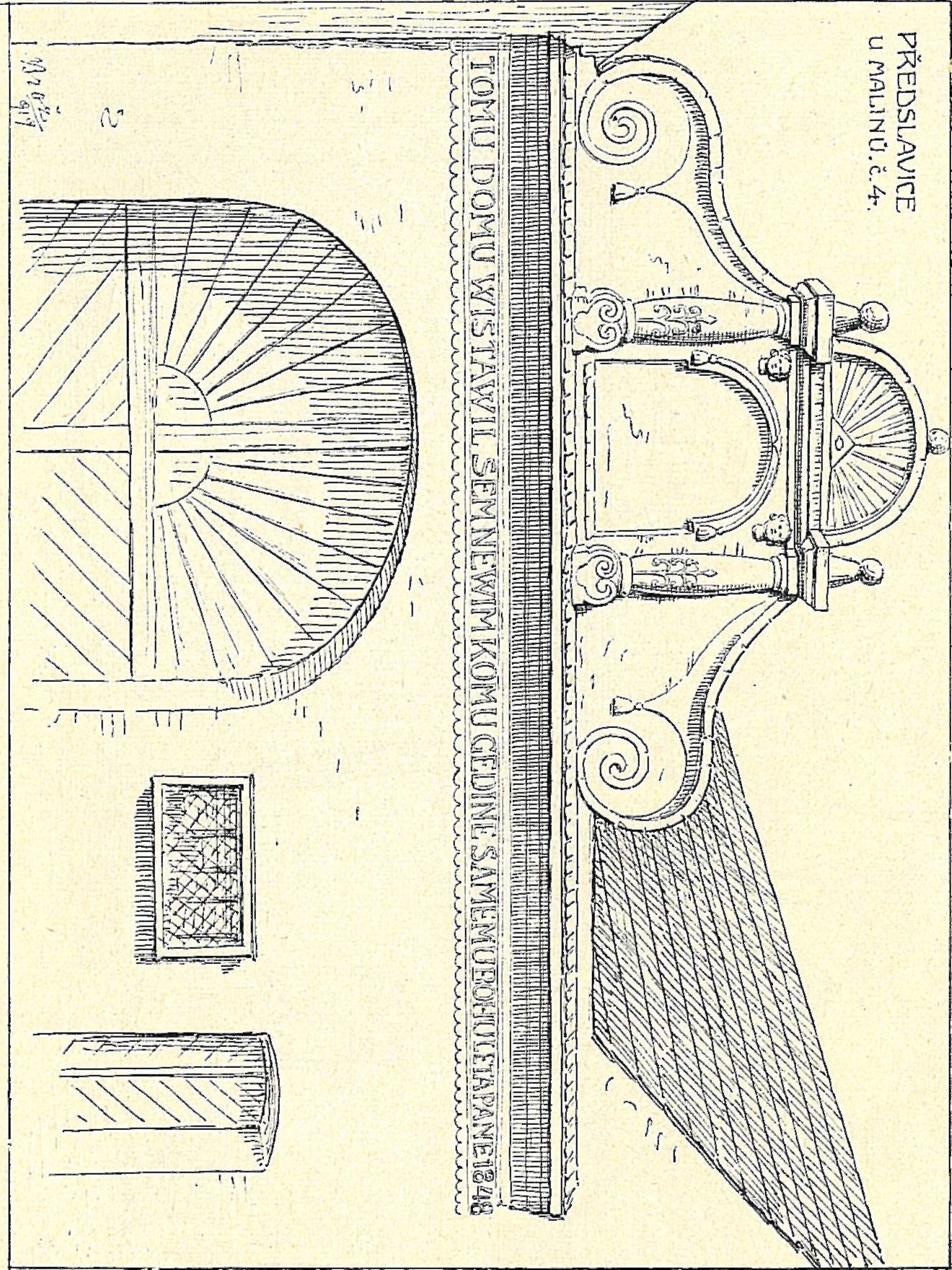 Zajímavé jest i, že při vjezdu užito zde kamenného pažení, polokruhového a goticky profilovaného, přeneseného sem z ně-