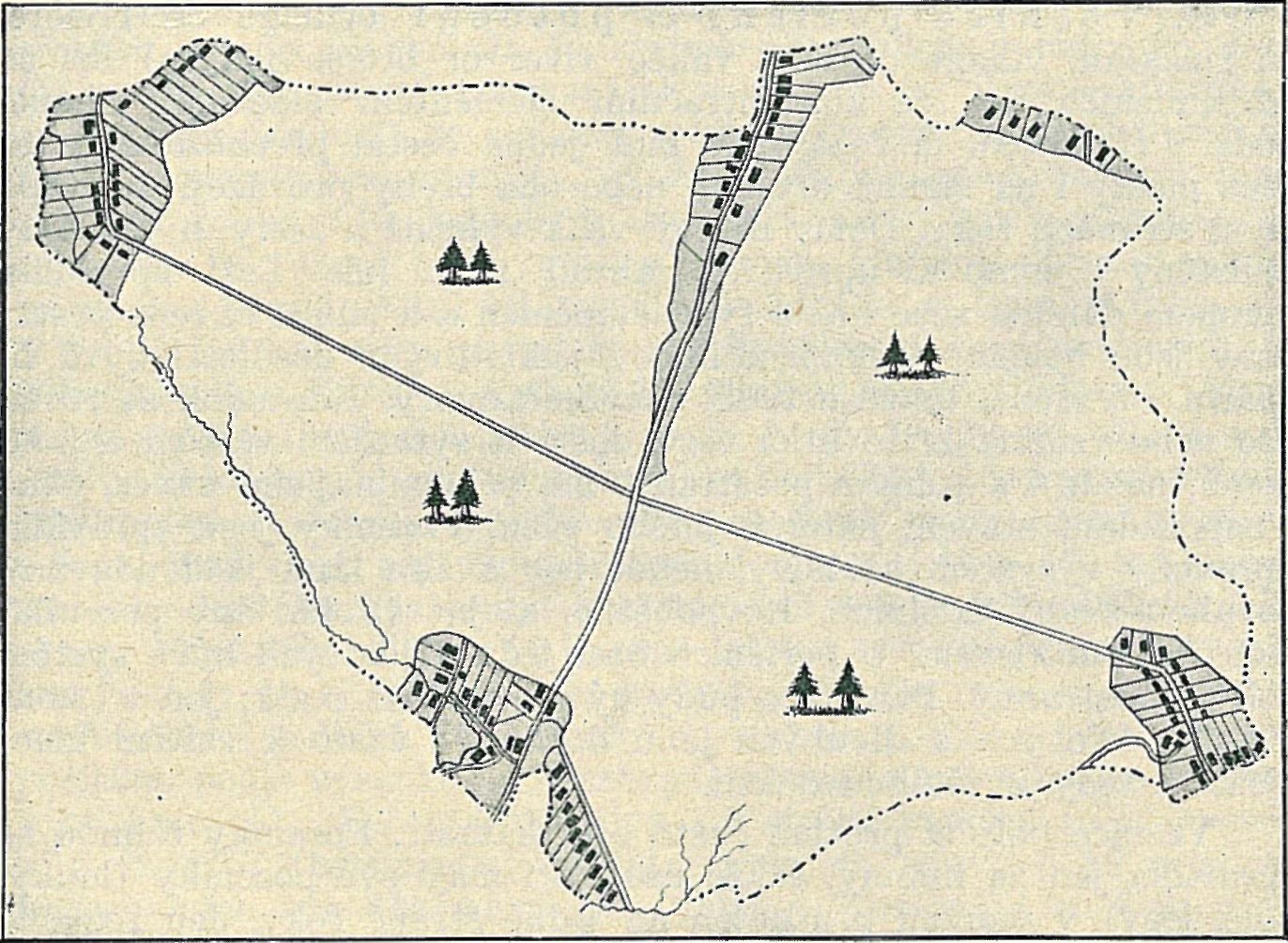 Obr. 2. Království. I. Příklad vzniku sídel uprostřed lesů. Skizza z r. 1836.
