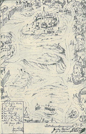 Plastický plánek z r. 1727. Vesnice se připomíná r. 1143.