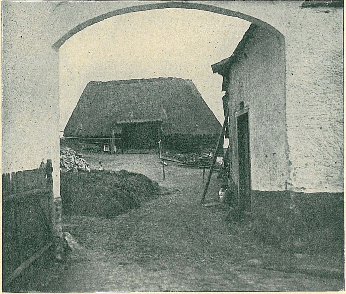 na rovine severne od nového kostela. V dolní části vesnice upomíná na plánek z r. 1727 i roubená stodola, jakých nyní je rovněž málo zachováno. Uzavírá dvůr u statku č. 25 (obr. ě. 15).