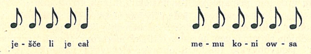 Neúchylná stabilita trojslabičného veršového konce („odcinek trzyzgłoskowy") proti první části sylabicky méně přísné je charakteristickou vlastností mnohých polských písní lidových.102)