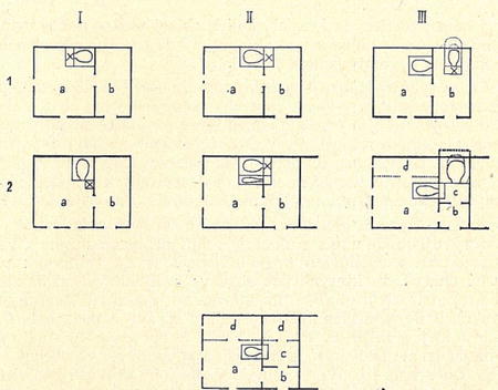 I. Pec i ohniště stojí ve světnici. 1. typ obecně slovenský, 2. typ rozšířený/v severovýchodních krajích republiky. II. Pec, resp. kamna stojí ve světnici, ohniště v síni. III. Kamna stojí ve světnici, pec a ohniště v sini. 1. Typ z východního Slovenska, 2. typ z Čech. tv. Kamna stojí ve světnici, pec stojí mimo dům.