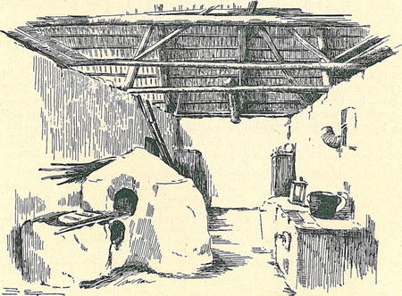 Obr. 10. Síň dvojdomu s pecí a bývalým ohništěm ve Štôle u Popradu.