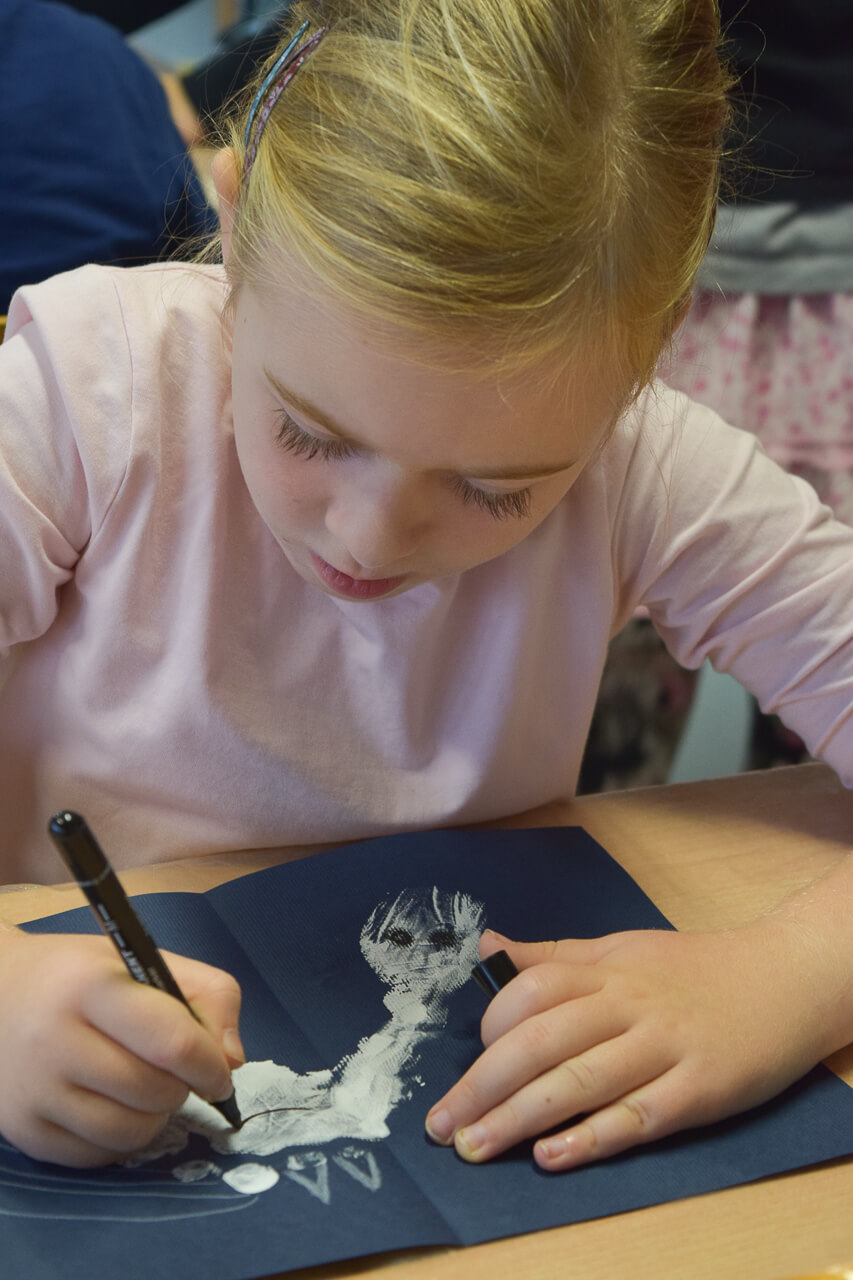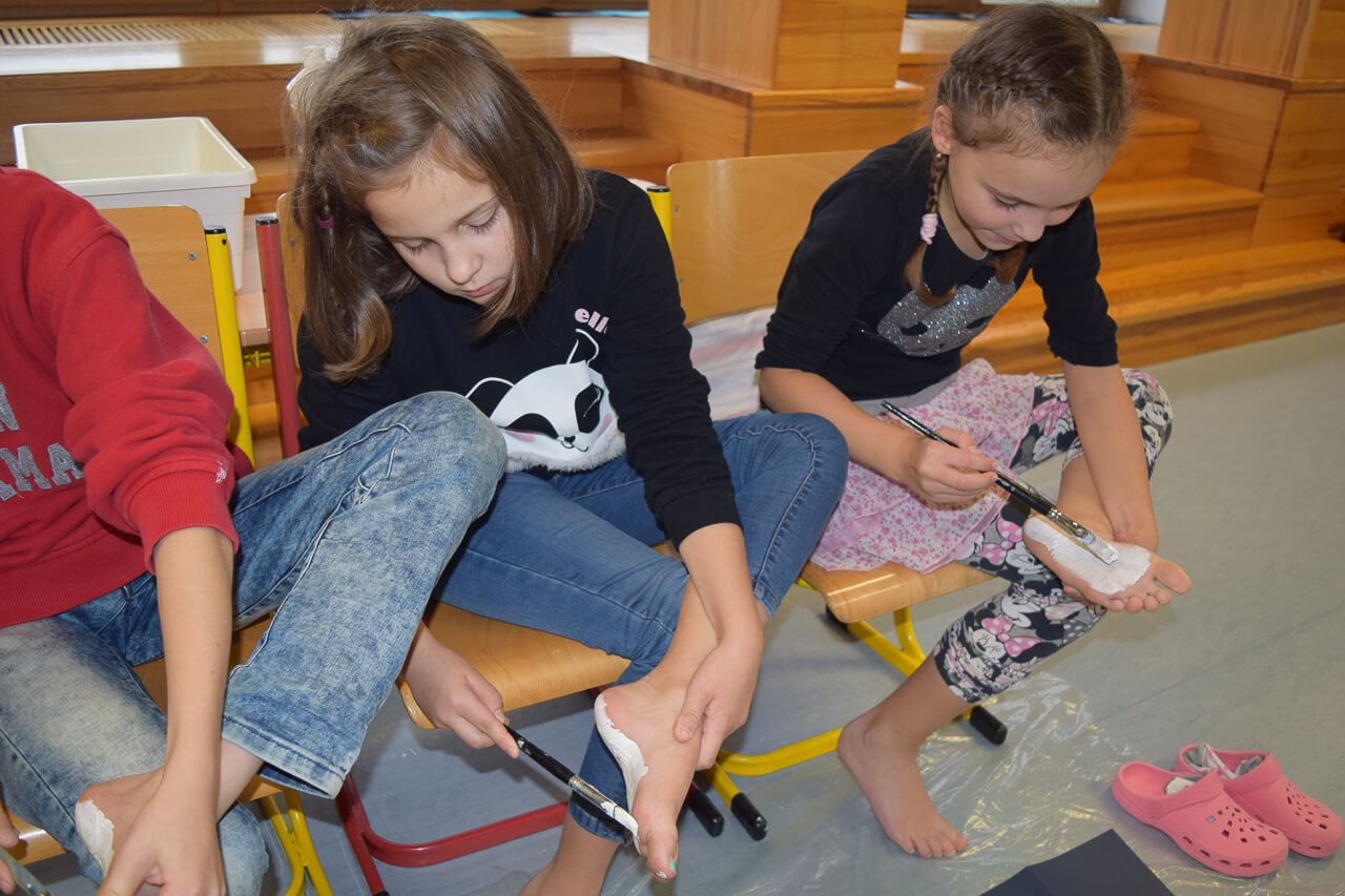 Základní škola v Ostopovicích u Brna připravila pro své žáky prvního stupně projektový den na téma sv. Martin. Děti si vyslechly dramatizaci pověsti o tomto světci, naučily se zazpívat písničku o jeho životě a skutcích a pak na jednotlivých stanovištích doplňovaly přísloví, pomocí otisku nohy malovaly bílého koníka, pekly svatomartinské rohlíčky, draly peří i malovaly husím brkem. Milým povzbuzením jim byla i paní Vlasta Pacalová, místní znalkyně lidové kultury.