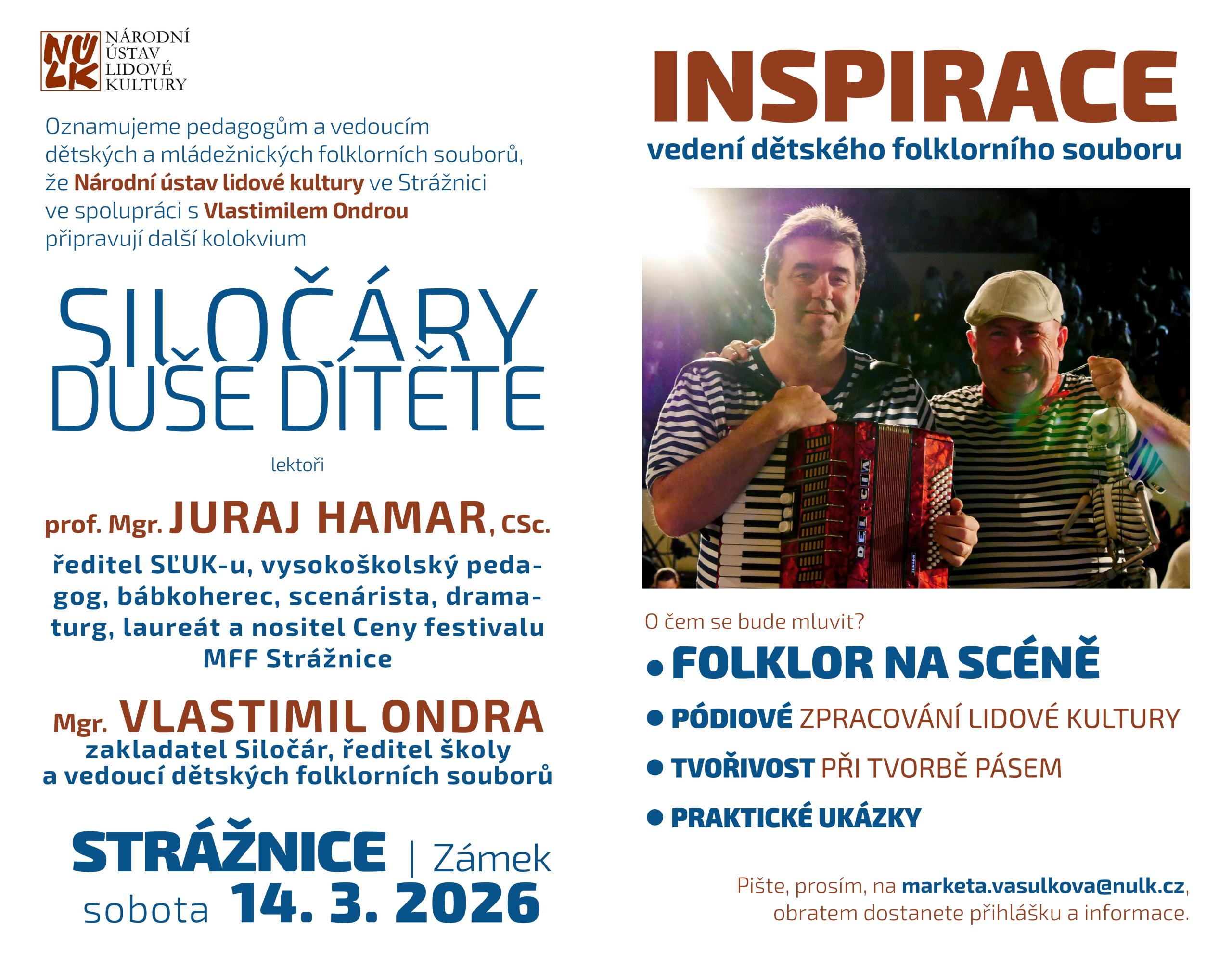 Národní ústav lidové kultury ve Strážnici, Vlastimil Ondra a Markéta Lukešová zvou (nejen vedoucí) dětských...